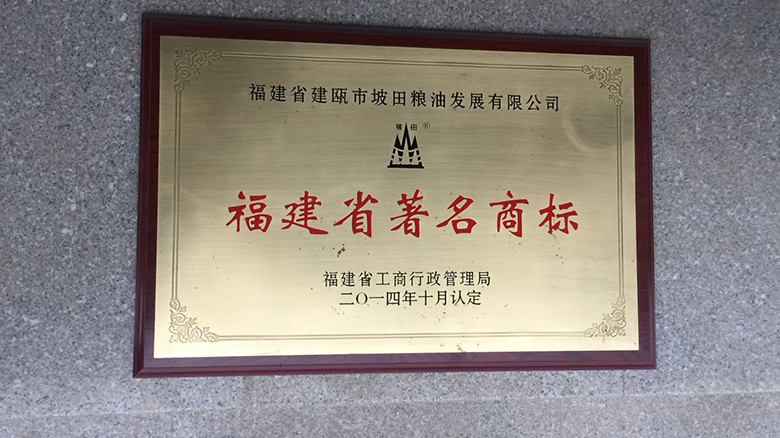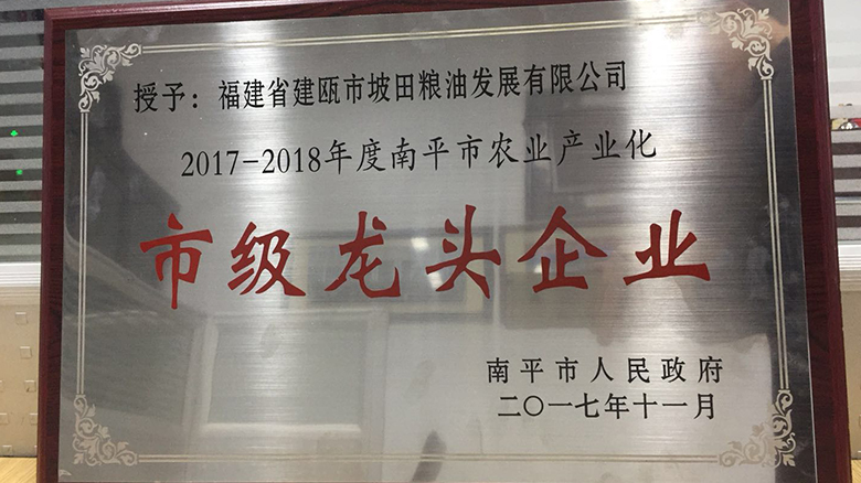 公司以创一流品牌为宗旨,坚持以“质量为生命,管理出效益,科技求发展,诚信赢市场”的经营理念,多年来获得了一系列荣誉称号。公司的“坡田”商标获得南平市知名商标;通过ISO9001质量管理体系认证;企业连续五年获南平市人民政府守合同重信用企业;被建瓯市工商行政管理局、建瓯市个体私营企业协会授予“优秀私营企业”称号; “坡田”牌商标获得福建省著名商标;授予福建省粮食行业放心粮油示范加工企业; “坡田”大米经中国绿色食品发展中心审核,被认定为绿色食品A级产品。建瓯市幸福坡田水稻专业合作社获得“省级示范社”称号、公司获得“南平市农业产业化市级龙头企业”称号。