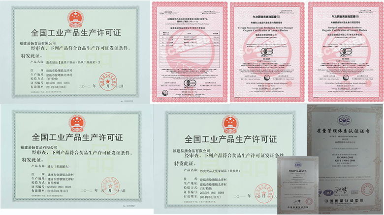 公司依托当地优越的自然环境,公司的主导产品水煮笋、锥栗、山药分别来自按日本有机农业标准管理的有机竹笋基地,被列为国家地理标志保护产品的建瓯锥栗,经过出入境检验检疫局备案的无公害蔬菜基地。公司以ISO、HACCP体系为标准建立了质量管理体系,并获得了QS认证、日本JAS有机食品认证。