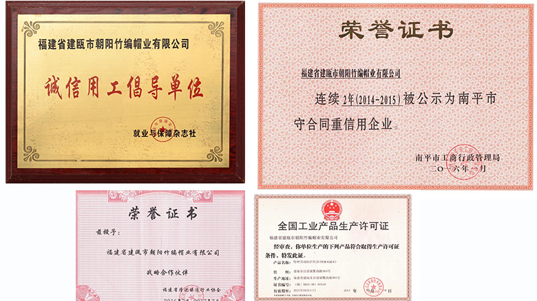 福建省建瓯市朝阳竹编帽业有限公司是竹编安全帽、竹编帽等产品专业生产加工的公司,拥有完整、科学的质量管理体系。福建省建瓯市朝阳竹编帽业有限公司的诚信、实力和产品质量获得业界的认可。欢迎各界朋友莅临参观、指导和业务洽谈。